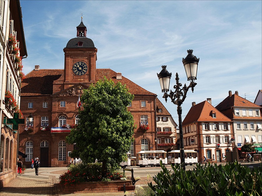 Die Abteikirche wurde im Zeitraum vom 11. – 13. Jahrhundert erbaut und ist nach dem Straßburger Münster die 2.größte gotische Kirche im Elsass. Sehenswert sind auch die Glasfenster und Wandmalereien, die aus dem 14./15.-Jahrhundert stammen. Den Kreuzgang und den romanischen Glockenturm sollte man sich unbedingt anschauen. Wissembourg erreicht man von Neustadt im Stundentakt mit der Regionalbahn. Vom Bahnhof aus ist man in 10 -15 Minuten zu Fuß im Stadtzentrum. Imposant liegt das Rathaus vor einem. 1667 wurde der Großteil der Stadt durch Brand zerstört. 1741 wurde das Rathaus wieder aufgebaut.