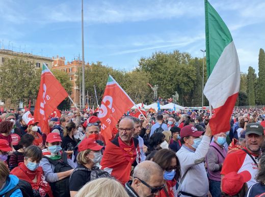 Nach dem Angriff auf das Hauptquartier der italienischen Gewerkschaft CGIL durch faschistische Gruppen und Gegner des Covid19-Impfstoffs fand am 16. Oktober 2021 in Rom eine große antifaschistische Demonstration statt. "Nie mehr Faschismus" war der Titel der Initiative der Gewerkschaften CGIL, CISL und UIL mit den Mitte-Links-Parteien.
