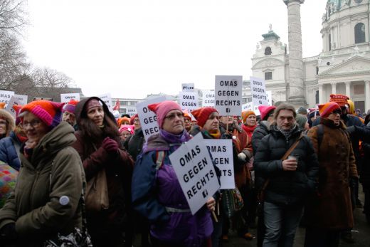 Der immer stärker werdende Rechtsruck Europas, ist ebenfalls Thema auf der Demo. Zahlreiche originelle transparente, wie etwa Nein zu "Schwarz-Blau„ wurden auf der Demo gesichtet. Ebenfalls auf der Kundgebung, die Omas gegen Rechts um Gründerin Monika Salzer die ein Ständchen für die Demonstranten sangen.Trotz Regen und Kälte zogen die Demonstranten, vom Wiener Karlsplatz zum Heldenplatz und wieder Retour, wo gegen Ende noch Austro Rapperin Yasmo ein paar Songs zum Besten gab. Besondere Vorfälle gab es auf der Demo, laut Polizei keine.