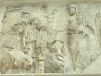 Der Altar “Ara Pacis” ist Pax gewidmet, einer Göttin, die in der augusteischen Politik verehrt wurde und deren Universalität, garantiert durch die Figur des Kaisers, der Altar verherrlicht, wie die Verwendung des Adjektivs Augusta andeutet: Das Dekret, das den Bau der Ara genehmigte, wurde 13 v. Chr. ratifiziert; der historische Anlass war Augustus’ Rückkehr von jenseits der Alpen, nachdem er drei lange Jahre fernab von Rom in zwei für die Sicherheit und den Wohlstand des Reiches entscheidend wichtigen Regionen als Administrator tätig gewesen war.