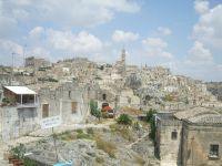 Sehenswert in Matera (Süditalien) sind die Höhlensiedlungen Sassi , die in der an den steilen Felshängen des zerklüfteten Flusstales der Gravina gelegenen Altstadt Materas liegen. Diese aus Tuffstein-Felsen herausgeschlagene Wohnungen wurden im Laufe der Zeit auch durch Anbauten erweitert, und die Höhlen zu einem stark verzweigten Komplex von unterirdischen Räumlichkeiten ausgebaut. Die Behausungen besitzen ein ausgeklügeltes Brunnen- und Bewässerungssystem das seit der Bronzezeit besteht und seine spuren bis zur heutigen Zeit erhalten konnte. Die Sassi wurden 1993 von der UNESCO zum Weltkulturerbe erklärt.