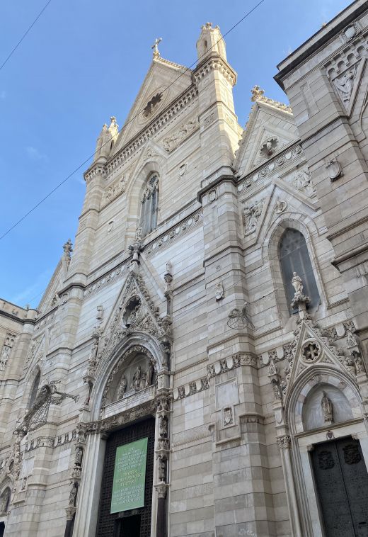 Ein wahres architektonisches und künstlerisches Meisterwerk, ein Ort, an dem Könige und Königinnen, Adlige und Menschen den Heiligen seit Jahrhunderten mit Geschenken und Gebeten ehren. Fresken, Gemälde, Statuen, Silberbüsten, polychrome Murmeln lassen den Besucher sich in einer zeitlosen Dimension fühlen. Ein großes Tor begrenzt die Grenze zwischen der Stadt Neapel und der Kurie, unterstrichen durch die unterschiedliche Gestaltung des Bodens und hervorgehoben durch die Stadtwappen unter den Altären. Ein imposantes vergoldetes Bronzetor markiert den Eingang. In einer Linie mit dem Tor befindet sich der Hochaltar, zwei weitere Altäre sind in den Seitenarmen der Kapelle platziert.