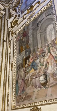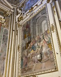 Die Kirche wurde zwischen 1583 und 1600 von Martino Longhi rekonstruiert, der gleichzeitig die frühbarocke Fassade lieferte. Die Kirche hat 11 Seitenkapellen im Besitz von Adelsfamilien und Mitgliedern der örtlichen Handwerkszunft.