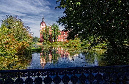 1815 legte Fürst Pückler-Muskau seinen wunderschönen Landschaftspark in der Oberlausitz an. Ein drittel des 830 Hektar großen Parks mit dem Neuen Schloss befindet sich in der Stadt Bad Muskau. Der größere Teil der Parkanlage befindet sich östlich der Neiße und nördlich der Stadt Leknica auf polnischer Seite.