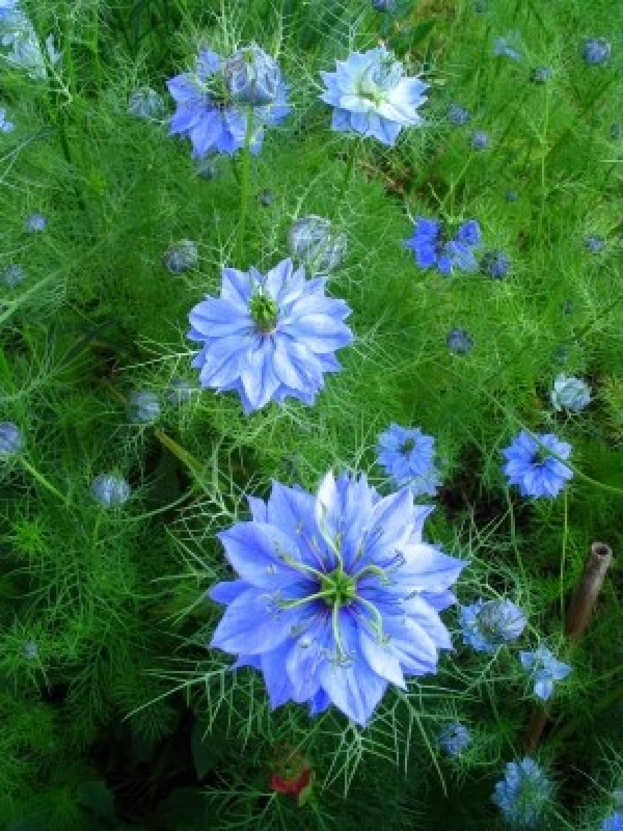 Noch weitere Arten des Schwarzkümmels sind bekannt, die jedoch eine geringere Bedeutung als Heilpflanze haben. Es gibt sogar eine giftige Sorte – Nigella garidella. Dafür wächst der türkische Schwarzkümmel (Nigella damascena) oder Damaszener als heimische Zierpflanze in unseren Gärten und ist auch als Schnittblume für die Vase sehr beliebt. Er wird oft als „Jungfer im Grünen“ bezeichnet oder „Gretel in der Heck“, weil er längere und feinere Blätter vorweist als die ägyptische Schwarzkümmelpflanze. Sein Samen ist etwas kleiner und graubraun und seine Blüten leuchten himmelblau.