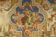 Raffellos Zimmer Sie sind zweifellos eine der Hauptattraktionen der Vatikanischen Museen. Die Räume waren die Privatgemächer von Papst Julius II., Der Raffael die Ausführung der Fresken anvertraute. Der Maler aus Urbino arbeitete dort von 1508 bis 1520, dem Todesjahr, nach dem die Arbeiten bis 1524 von seinen Schülern ausgeführt wurden.   Stanza della Segnatura, die die private Bibliothek von Julius II. Beherbergte. Hier sind vier Fresken, die die vier Hauptdisziplinen des Wissens darstellen: der Sakramentenstreit (Theologie), die Schule von Athen (Philosophie), der Parnass (Poesie) und die Tugend und das Recht (Rechtswissenschaft).