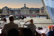 Die VIP-Gäste hatten das Privileg, die majestätische Kulisse des Schlosses Münster und des Schlossplatzes aus nächster Nähe zu erleben. Martino Brando gelang es sogar, diesen einzigartigen Moment festzuhalten, kurz bevor ein überraschender Regenguss die Szene in ein schillerndes Spektakel verwandelte. Die VIP-Gäste wurden Zeugen eines beeindruckenden Naturphänomens, das die Atmosphäre des Turniers noch weiter aufheizte. Die Ausstellung rund um den großen Turnierplatz versetzte die Besucher in Begeisterung. Die sorgfältig dekorierten Stände waren nicht nur die perfekte Anlaufstelle, um nützliche Artikel für Pferd und Reiter zu erwerben, sondern boten auch Raum für die Entdeckung von Kuriositäten.